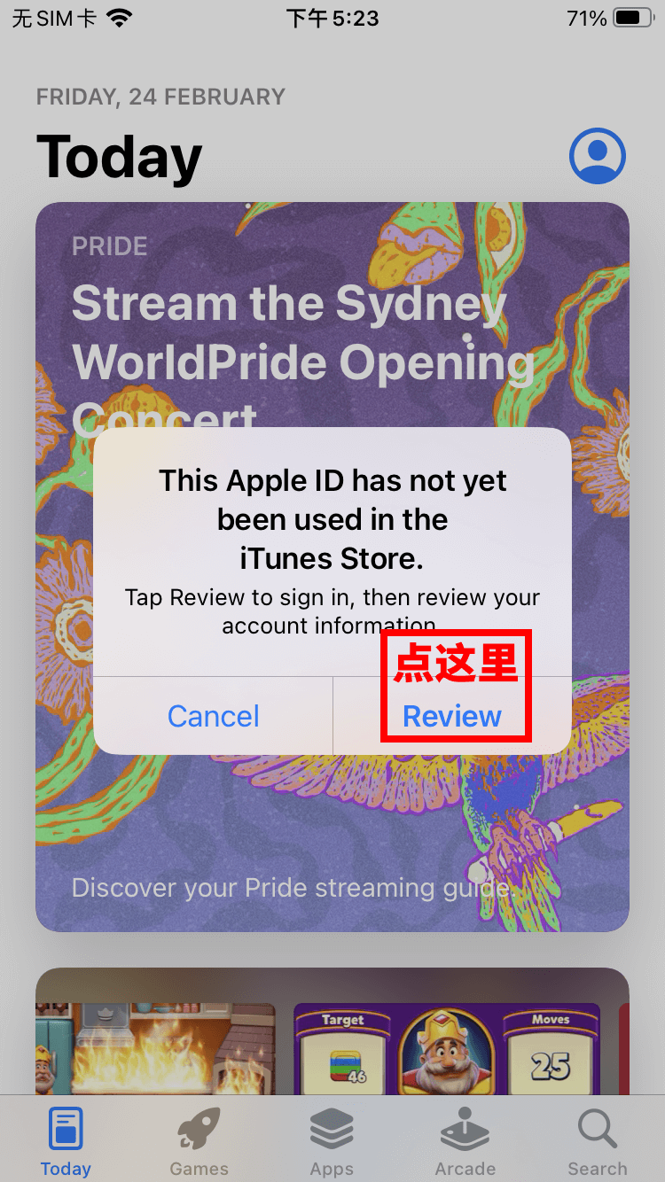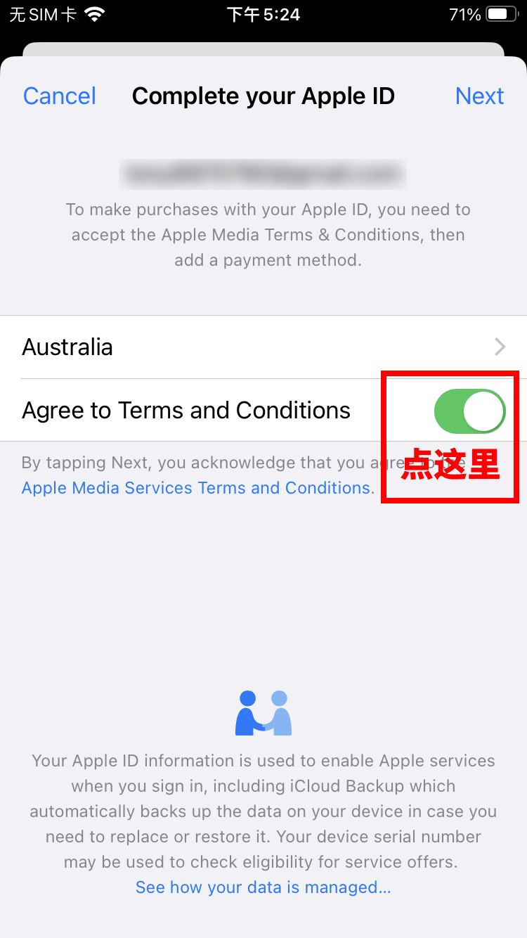 滑到屏幕顶部,用新建的澳大利亚 Apple ID 登录